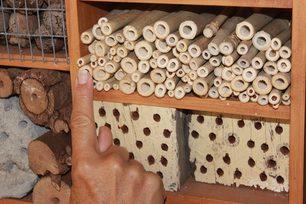 Her ingenuity in providing nest sites, etc., for a variety of insects with cardboard, straws, stalks of agapanthus, garden pots, holes in wood, gave us all the impetus to view our ‘rubbish’ with new eyes. She showed us the tiniest of holes in xanthorrhoea flower stalks and even the mortar between the bricks of her house providing nests for a variety of bees.