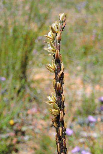 Amongst all the other flowers were two splendid specimens of the Tall Leek Orchid, (Prasophyllum elatum) (below, J Start) and along the main track were frequent displays of the Blue Lady Orchid (Thelymitra crinita). Cowslip Orchids (Caladenia flava ssp sylvestris) were also flowering.