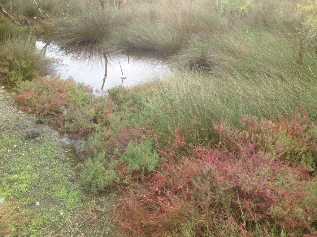 Baigup, in one of the Noongar language dialects, means “place of rushes”. The two common species we saw were Sea Rush (Juncus kraussii) and Marsh Club-rush (Bolboschoenus caldwelli). Seablite (Sueada australis) (below, D. Poynton) with its partly green, partly reddish–purple foliage made a contrast against the green of the rushes.