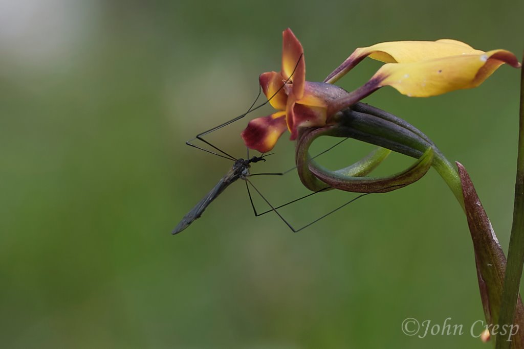 Altogether, we saw about 50 wildflower species, including at least 13 species of orchid. One was the Blood Spider Orchid Caladenia filifera, which was new to some of us. A small field of the tiny bladderwort Pink Petticoats Utricularia multifida was in the more waterlogged area. These are carnivorous plants that trap little animals in a noose-like bladder. The sun shining through a forest of sundews and bee orchids made a spectacular display.