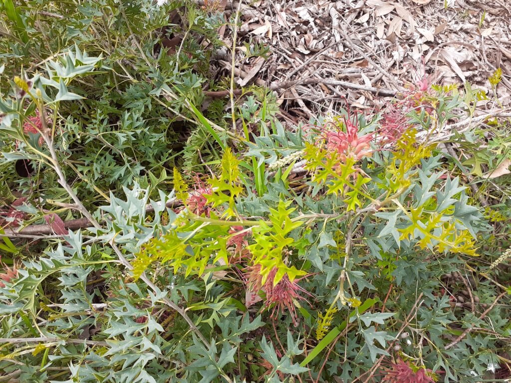with Acacia pulchella in the backgroundGrevillea bipinnatifida
