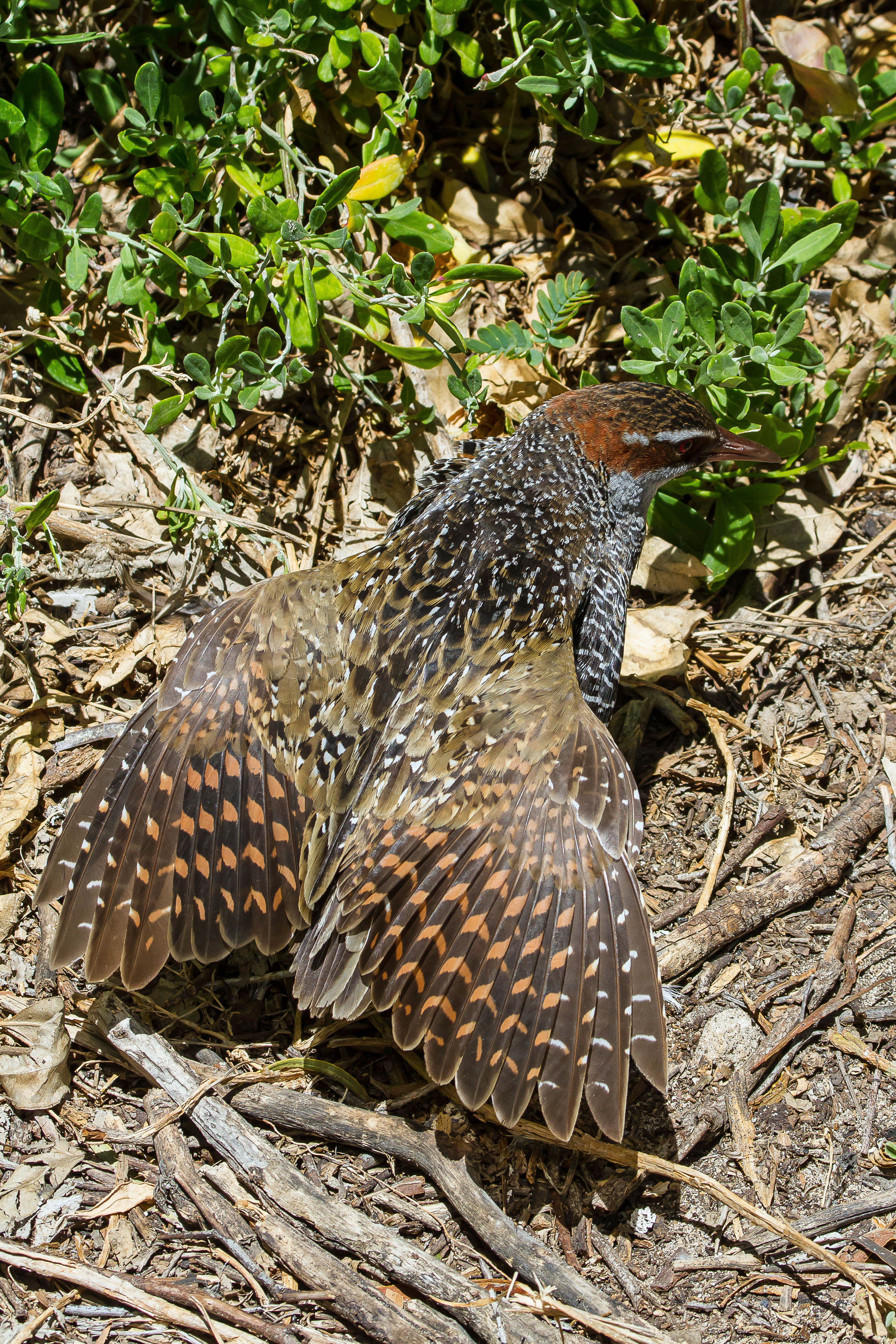Back at the picnic area we noticed Buff Banded Rails with chicks. At least two breeding pairs were present as two sets of chicks of differing size were spotted. One adult was seen in an unusual pose with wings opened, appearing to be catching some warmth from the sunshine. All too soon it was time to make our way back to the jetty to catch the ferry back to the mainland after yet another enjoyable trip to this wonderful nature reserve.