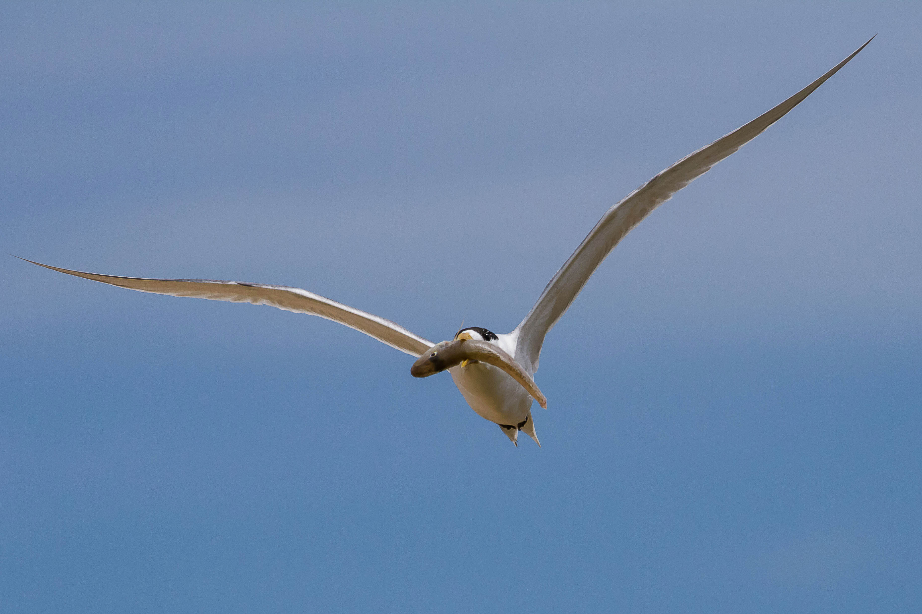 Bridle Terns were also back in good numbers compared to 2013, though numbers still appeared to be down on the better years prior to the rat invasion. Just below the lookout that overlooks the northern Pelican nesting area a pair of Caspian Terns were seen feeding their chick. One fish was swallowed down then the chick was fed another, a small Sand Whiting. The chick struggled to swallow the fish and in the end one of the parents ate it.