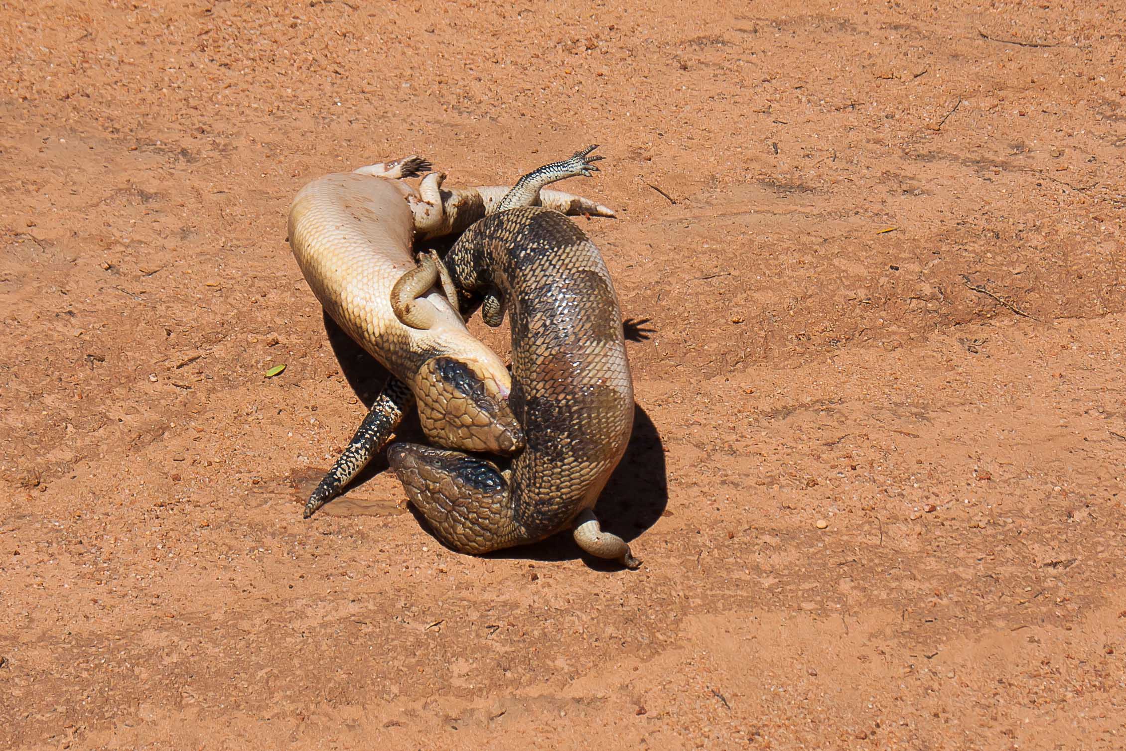 Notable sightings included a Pebble Dragon (Tympanocryptis cephalus), which would not have been spotted if it had not moved while a gate was being opened – so good was its camouflage. Another special moment was when they came across two male Western Blue-tongued Skinks (Tiliqua occipitalis) engaged in a fight over territory or mating rights. The aggressive behaviour stopped for a while as they assessed whether those in the audience were a threat, but then they went at it full throttle until one had had enough and beat a retreat into the roadside shrubs.