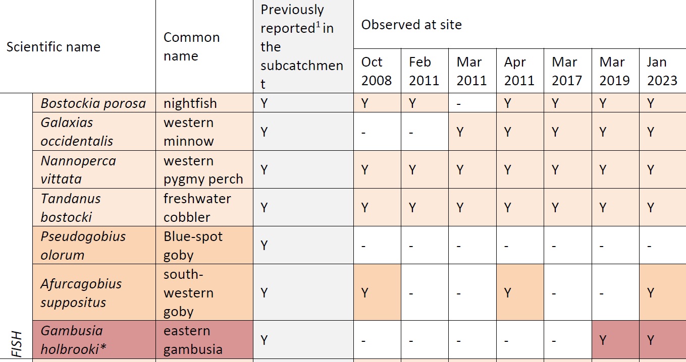 Survey of Fish and Crustaceans, Mortimer St Gauging Station, Gingin.