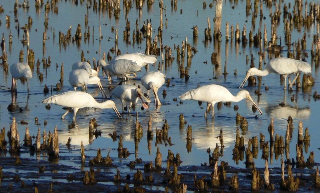 Yellow-billed Spoonbill (Platalea flavipes) (below, R Yarwood).