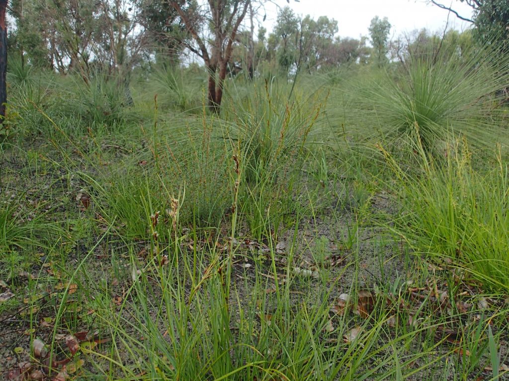 Not in flower, but also obvious were the shoots of young grasstrees and haemodorum species.