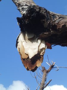 Our first find was an unidentified red fungi growing inside a burnt out tree trunk.