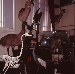 Michael’s Museum was once the location of the Guildford Picture Theatre and its walls are now bedecked with mounted heads of Bison, Deer, Kudu, and even that of an Elephant. A pair of African Elephant tusks [2.25 m each], straddle a pair of Tiger skin rugs on the eastern side of the hall. Fish models, including several species of Shark, hang from the ceiling on the western side of the hall.