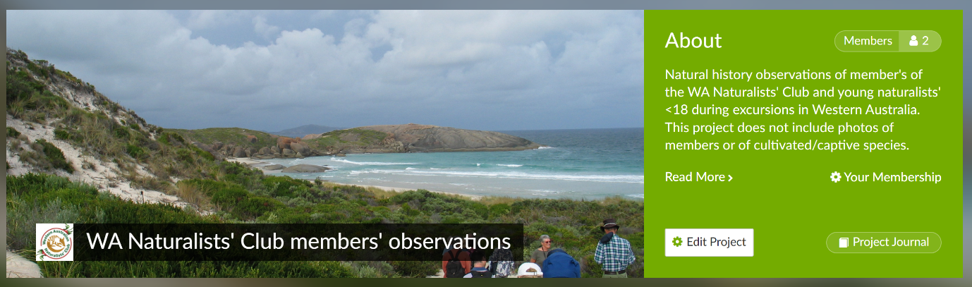 Alternatively, you can set up a project specifically for an excursion and add your observations to that project (or I can assist you with that). I have set up an umbrella project that can link all our individual excursion projects together, which is called WA Naturalists’ Club (https://inaturalist.ala.org.au/projects/wa-naturalists-club). Four projects are currently linked under this, one for Yunderup observations, two Bioblitz projects, and the WA Naturalists’ Club members’ observations project. The total observations from these three projects is 1,349 with more than 1,000 species recorded by 23 observers. We ask you to join the members’ observation project to build further on our observations.