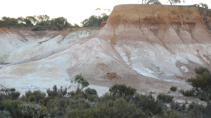 We visited many places including the Macrocarpa Trail with its thousands of Eucalyptus macrocarpa which, although not in flower, were still stunning. They were surrounded by Banksia sphaerocarpa in full flower. We also visited the Buckley’s Breakaway (below, R Green) and found the lunar-like landscape a photographer’s delight. At the base were piles of quartz and bright white kaolinite, and at the top a deep orange cap-rock of laterite.
