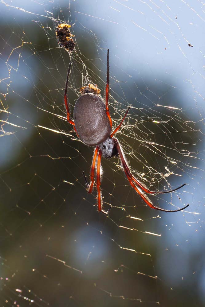 From the woodlands the track then moved through the wetland and the vegetation changed accordingly. A few Golden Orb Weaver spiders (Nephila edulis) were seen in this area, the early morning sun showing up the golden colouring of the web from which their common name originated. As is typical for this late in the season most were very large.