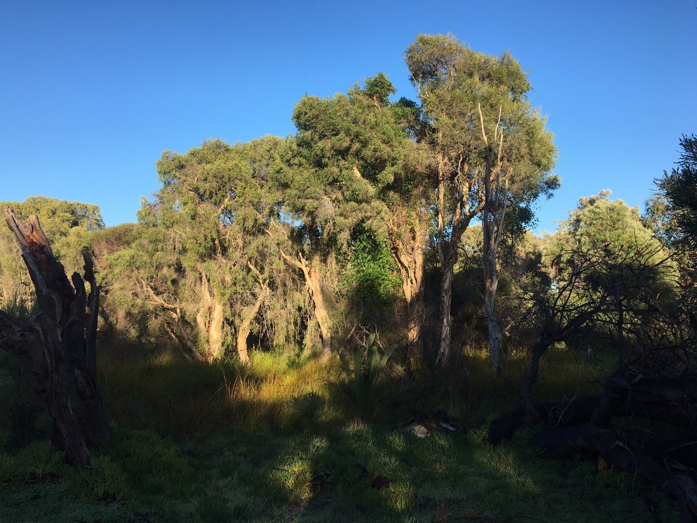 Amongst the understory plants were Zamias, Swan River Myrtle, Broom Ballart and Regelia ciliata. Xanthorrhoea preissii was common, but only a few specimens of the trunkless X. brunosis were observed.