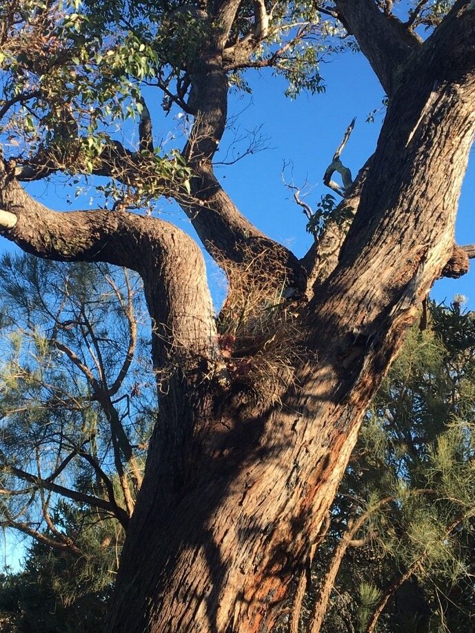 The most unusual sight for the morning was a Dianella growing in the fork of a Marri about six metres above the ground. Obviously, a bird that had eaten a ripe berry had perched on a branch above the fork some years ago!