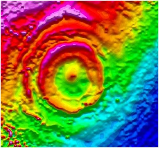 Following the untimely death of American meteorite guru Gene Shoemaker in a car accident on the Tanami Track in 1997, the Teague Ring was renamed the Shoemaker Impact Structure (north east of Wiluna.) The inner syncline is about 20km across while the outer anticline is 26km across. In addition to the large ring structure, the crater and the rocks display many of the characteristics listed at the beginning, particularly the presence of shatter cones, planar deformation fabrics and a central rebound structure. The age of the impact has not been determined but it must be younger than the 1880 million year old zircons found in the overlying volcanic rocks.