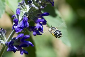 Plants attracting bee pollinators to Faye’s garden were a mix of native, exotics and included some succulents. Leschenaultia, Hibbertia sp., Hemiandra, bush basil, and Grevillea were amongst common bee attractants but the flowers of exotics like bolted kale, Hydrangea, Lantana, Pentas, Lobelia, Buddleia and others were also visited and used by insects.
