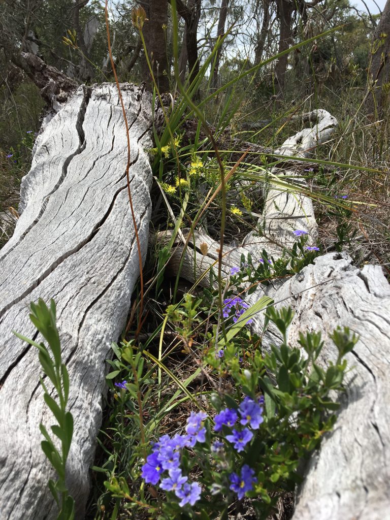 Although the visit to the park was ostensibly to view the reptiles and other fauna we were able to take a short GOLLY Walk, led by Gane Snr, through the bush at the rear of the Doyle’s 4.5ha property to view the last of the spring wildflowers. These included a tall pink stylidium, possibly Stylidium brunonianum, Dampiera sp. possibly Dampiera linearis, Summer Starflower (Calytrix flavescens)(above), Pixie Mops (Petrophile linearis), Purple Flag (Patersonia occidentalis), Catspaw (Anigozanthus humilis) and Cottonheads (Conostylis aculeata).