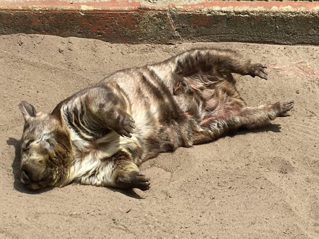 Apart from reptiles, the park has a number of Australian animals: kangaroo, wallaby, Emu, a very sleepy Hairy-nosed Wombat (above) and a pair of Dingos, one of which commenced howling soon after Michele came within a few metres.