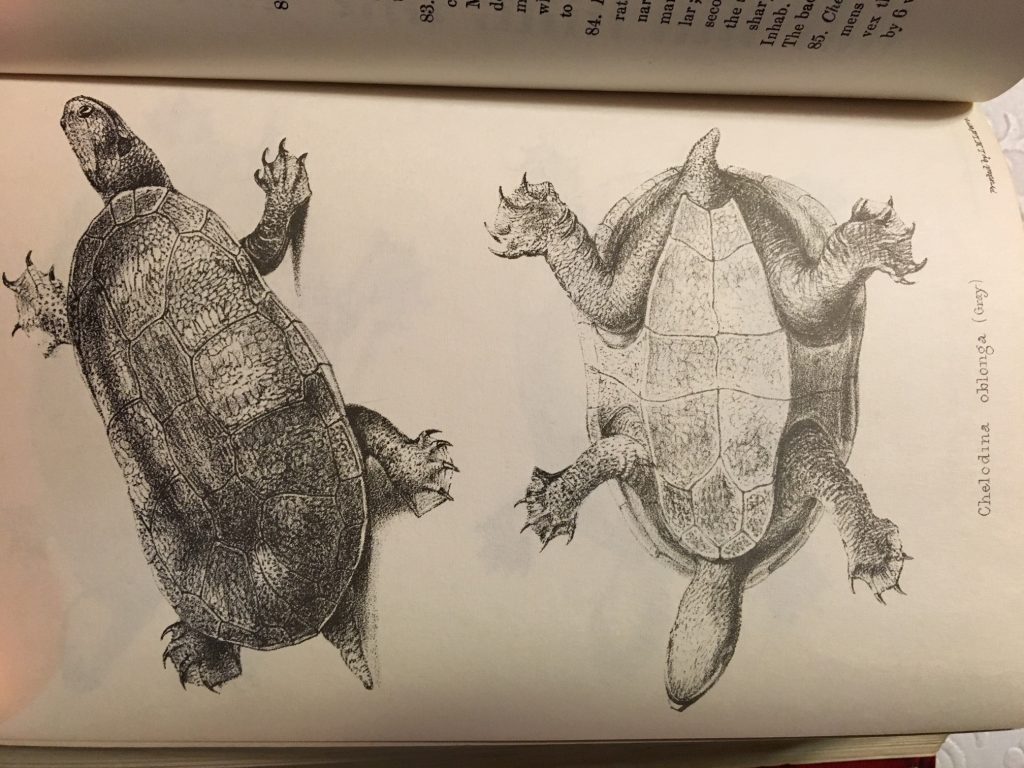 In the indoor-outdoor pond we saw a number of turtles labelled Oblong Turtle (Chelodina oblonga). For many years the similar turtles found in northern and south-western Australia were believed to be a single species but in 2013, the International Commission on Zoological Nomenclature ruled that the name C. oblonga should be used for the Northern Snake-necked Turtle first collected by explorer George Grey in 1839 and described by John E Gray of the British Museum in 1841(below left,). The southern species, known as the Western Snaked-necked Turtle or Longed-necked Turtle, is now C. colliei.
